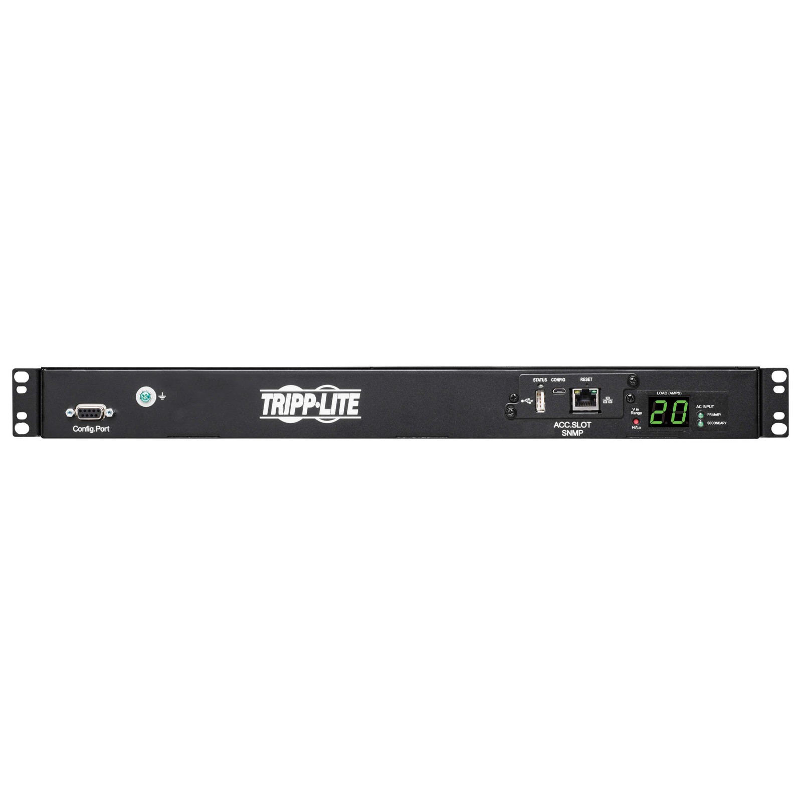 3.8kW 200–240V 单相 ATS/监控型 PDU - 8 个 C13 和 2 个 C19 插座,双 C20 输入插座,两条12 英尺(3.66m)输入电源线,网卡,1U,TAA