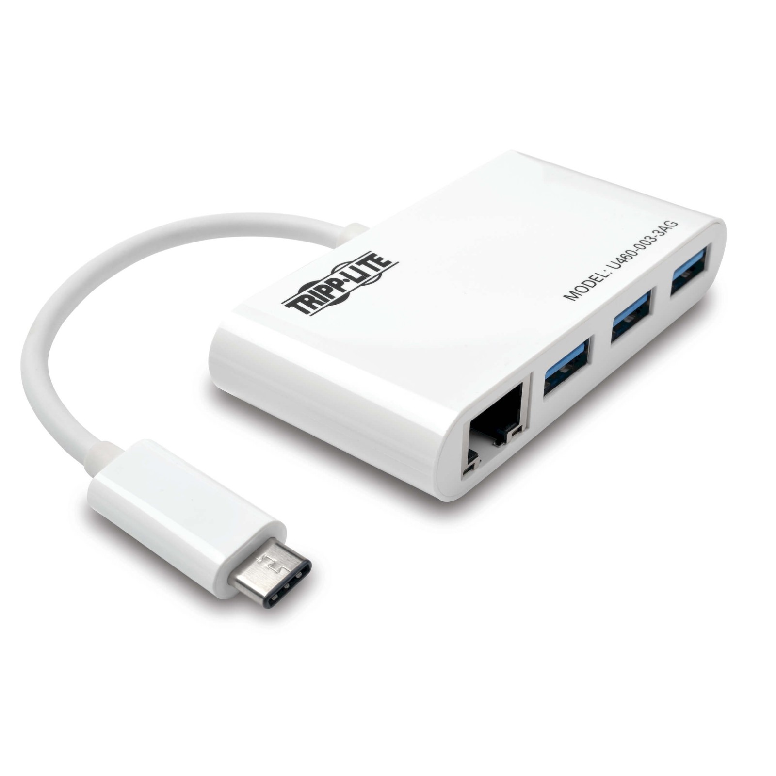3 端口 USB-C 集线器,带 LAN 端口,USB-C 转 3 个 USB-A 端口,Gbe,USB 3.0,白色
